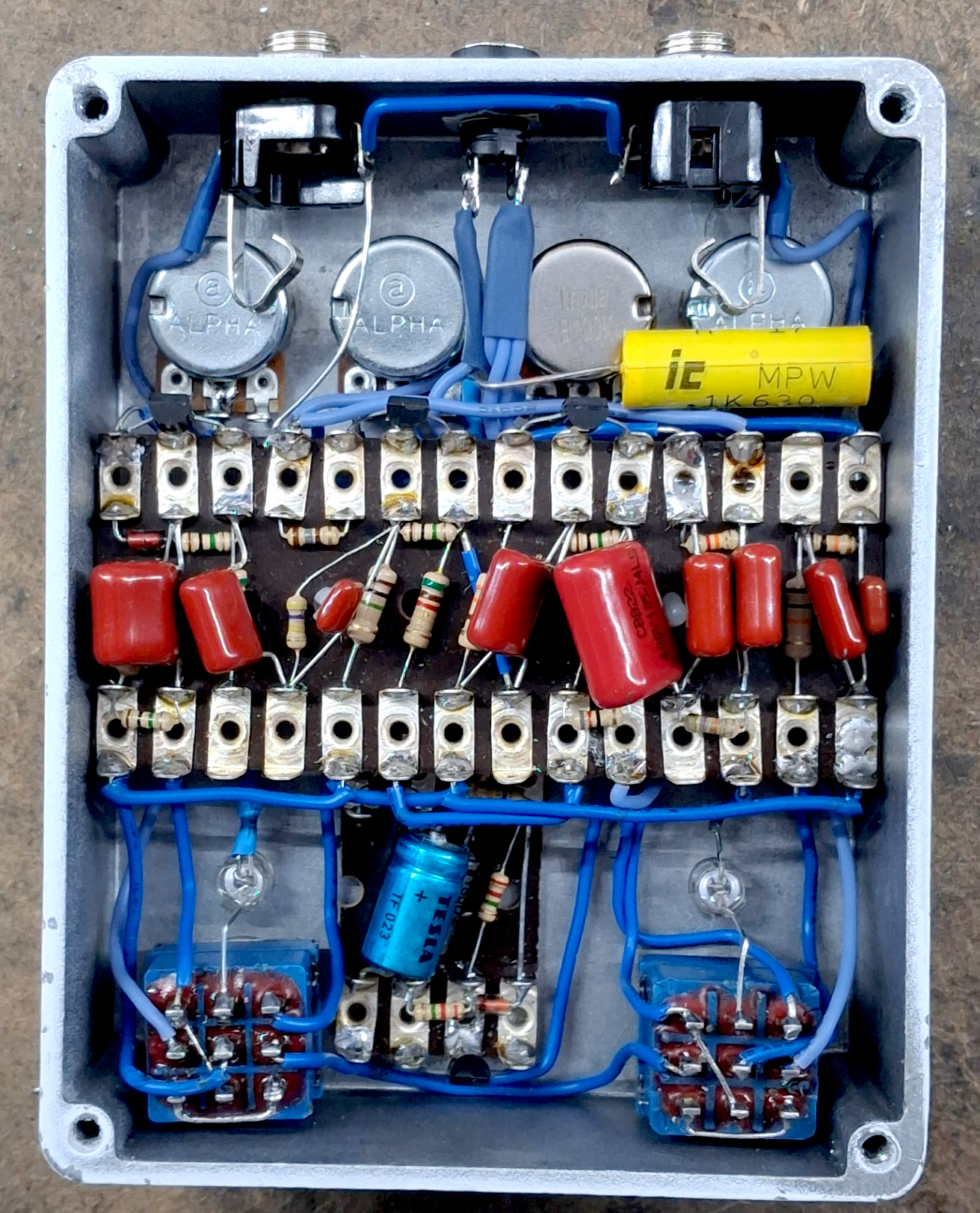 Come ho spiegato in questo precedente articolo, ho totalmente rivoluzionato la filosofia costruttiva dei miei pedali: per circuiti di tipo Fuzz, Boost, Overdrive e Distorsione, ho abbandonato le schede di circuito (PCB) per utilizzare il metodo Tag Board, influenzato dai circuiti di Hello Sailor Effects, dalle grafiche di Reeves Electro e dai componenti vintage del mio amico Tim Electro